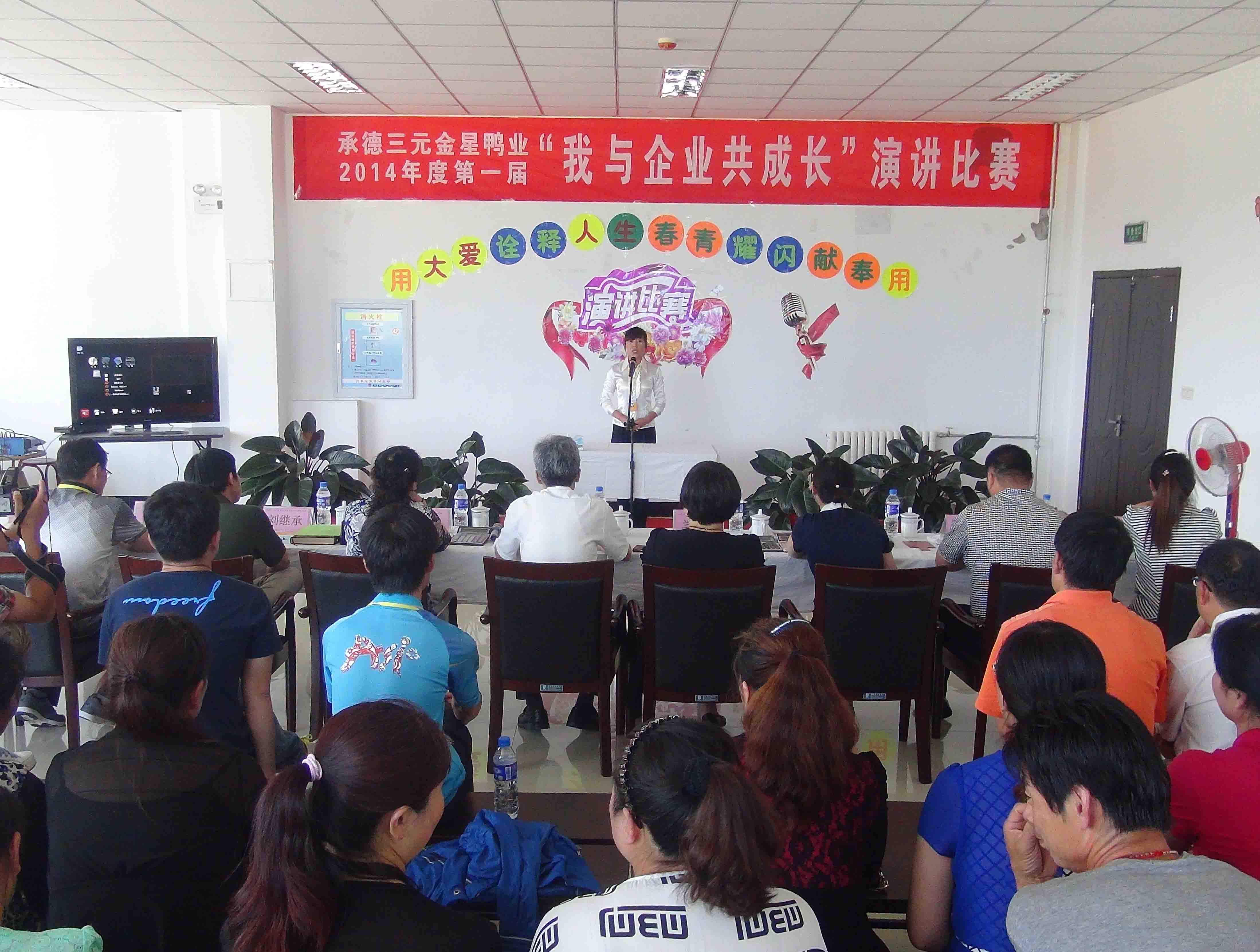 ? ? ? ? 6月18日下午,承德鴨業(yè)第一屆“我與企業(yè)共成長(zhǎng)”演講比賽在職工之家拉開(kāi)序幕。演講以“用大愛(ài)詮釋人生,用奉獻(xiàn)閃耀青春”為主題,吸引了來(lái)自不同崗位共21位選手參加。公司黨委書記、副總經(jīng)理胡勝?gòu)?qiáng)帶領(lǐng)人力資源部和綜合辦公室相關(guān)人員一起觀看了演講比賽。