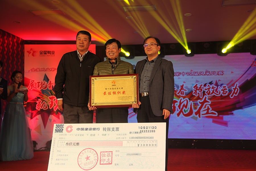 最佳組織獎(jiǎng)由承德鴨業(yè)黨支部獲得,精神風(fēng)貌獎(jiǎng)由金星分公司黨支部獲得。