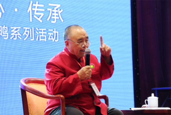 艾廣富結(jié)合自己的從業(yè)經(jīng)驗,向各位參會人員詳細講解了北京烤鴨的起源、發(fā)展和行業(yè)現(xiàn)狀,與會人員聽得仔細、記得認真。講到高潮時,臺下不時響起熱烈的掌聲。